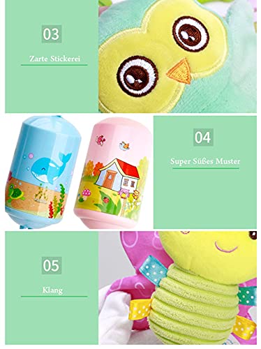 ☁【 Lustiges Spielzeug für Kinder】In den Flügel der Tierfigur liegt raschelndes Papier. Wenn das Baby in die Flügel kneift, ertönt ein deutliches Geräusch. Kinder werden von diesem interessanten Design begeistert sein. Stickereien auf den weichen, ausgestopften Rasselspielzeugen sind exquisit und auffällig, was hilfreich ist, um Kinder für eine lange Zeit fokussiert zu halten.