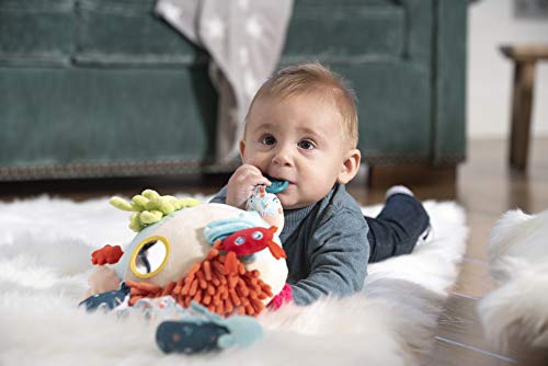 Ein Meereserlebnis zur Stimulierung der Sinne. Die Stimulierung der Sinne ist für das Baby sowohl nützlich als auch amüsant. Es wird viel Spaß haben, dieses weiche Korallenriff zu betrachten, zu berühren, zu beißen und zu hören, und gleichzeitig seine Sinne fördern. Ihr Kind wird es lieben, die Geheimnisse des Riffs zu erforschen und die abnehmbare Baby-Krakenrassel zu schütteln.