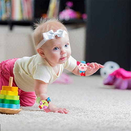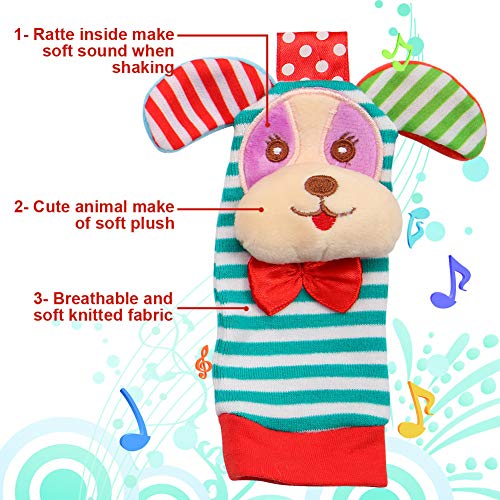 Twister.CK 4er Pack Handgelenk Rassel und Fuß Finder Socken, entzückende Tier Infant Baby Rasseln Development Toys Set – Welpen und Piggy
