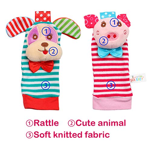 Specification: Twister.CK 4er Pack Handgelenk Rassel und Fuß Finder Socken, entzückende Tier Infant Baby Rasseln Development Toys Set – Welpen und Piggy