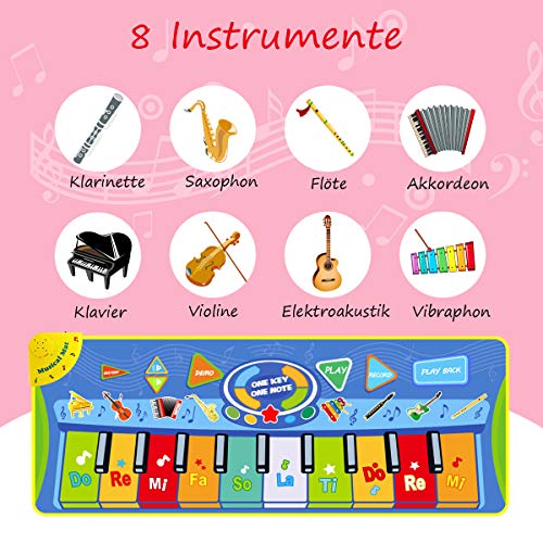 -🎹-Klang von acht Instrumenten:Tanzmatte Mit 8 Musikinstrumenten, darunter Klavier, Violine, Akkordeon, Horn, Vibraphon, Trompete, Gitarre und Flöte. Diese Klaviermatte hält Ihr Kind stundenlang im Spaßmodus und hilft ihm, sich mit Musik zu üben Wissen;