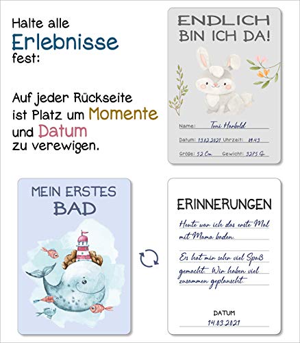 ♥ AN ALLES GEDACHT – Alle wichtigen Meilensteine, Momente & Entwicklungen des 1 Jahres können mit diesen Erinnerungskarten festgehalten werden. Dadurch entsteht ein tolles Babytagebuch mit mehr Vielfalt als bei vielen anderen Milestone Cards Anbietern.