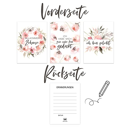 ♥ GESCHENKIDEE – Die Karten sind in DIN A6 auf 350g/m² Designpapier gedruckt. Das Kartenset ist in einer schönen Erinnerungsbox verpackt und eignet sich somit auch hervorragend zum verschenken an die werdende Mama oder den werdenden Papa.