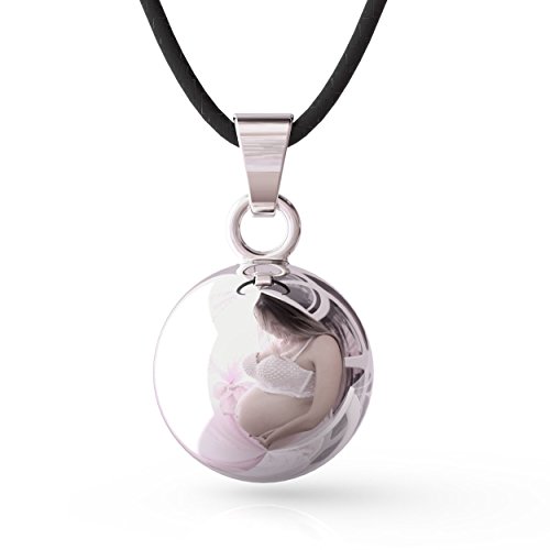 Klangkugeln, auch “Bolas” genannt werden gerne von Schwangeren getragen. Das Baby hört das beruhigende sanfte Klingeln der Schwangerschaftskugel ab einem Alter von etwa 20 Wochen. Auch nach der Geburt trägt die Mama die Kugel weiter und das Baby erinnert sich an das Geräusch der Glocke. Die Klangkugeln werden aber nicht nur in der Schwangerschaft getragen, sondern auch zur Meditation, um Engel zu rufen oder einfach als schönen Schmuck. Wir tragen die Klangkugeln am liebsten mit weichen Satinkordeln, zwei Bänder in den Farben Elfenbein und Schwarz liegen bei. Die Bänder sind 100cm lang, lang genug damit sie auf dem Bauch der Schwangeren hängen und das Baby auch das Klingeln aus der Kugel hört. Geschenk-Set mit Klangkugel, zwei Satinbändern und Schmuckbeutel.