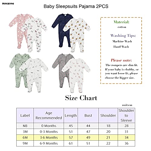 Specification: Baby Langarm Schlafstrampler 2er Pack – Strampler Jumpsuit Jungen Mädchen Spieler Baumwolle Schlafanzug für Neugeborene 0 Monate