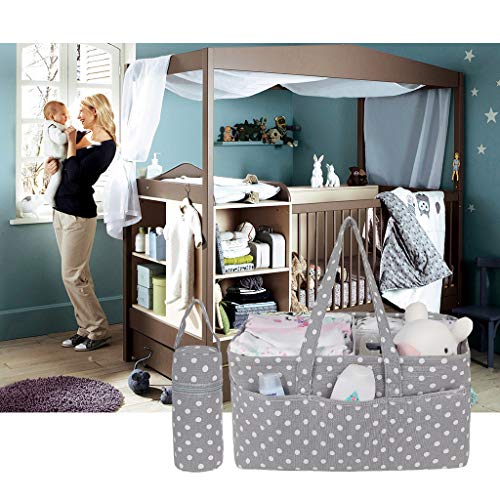 Specification: Baby Windel Caddy Organizer, Segeltuch Aufbewahrungskörbe mit Isolierte Flaschentasche Abnehmbar 3 Fächern Kinderwagen Auto Windeln Organizer für Neugeboren