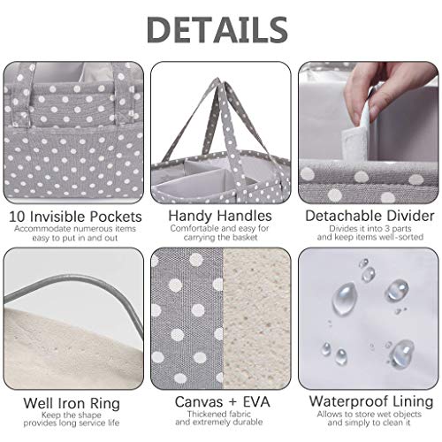 ❤ Mehrzweck – Die Wickeltasche des Baby Windel Caddy Organizers ist tragbar genug, um überall im Haus oder auf Reisen mit dem Auto getragen zu werden. Sie können es wie einen Windelcaddy, einen Hausarbeitsraum, einen Kindergartenorganisator oder sogar als Make-up-Organisator verwenden.