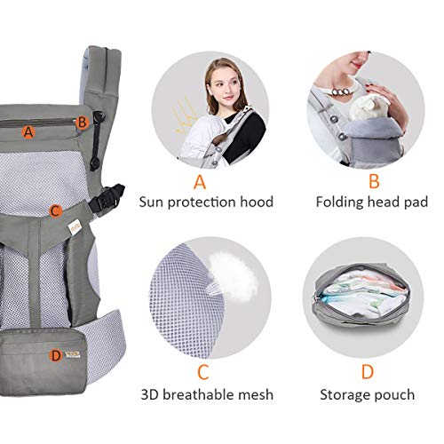 Specification: SONARIN Premium Atmungsaktive Babytrage mit Aufbewahrungstasche,Ergonomisch,Sonnenschutz haube,für Neugeborene& Kleinkinder (0-48 Monate),Maximale Belastung 20kg,Baby Tragetasche(Dunkelgrau)