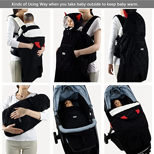 Bebamour Universal Hoodie All Seasons Babytragenbezug Winter Warm (Black)