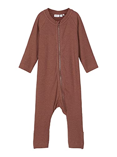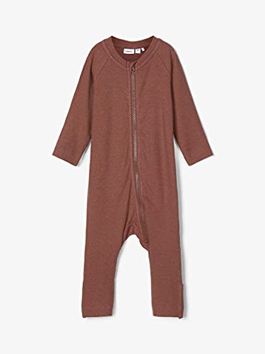 Baby-Body von NAME IT mit langen Armen, langen Beinen und Rundhalsausschnitt, über durchgehenden Reißverschluss zu schließen. Besonders angenehm auf der Haut durch Stretch-Qualität aus 57% nachhaltig produzierter Bio-Baumwolle, 38% Modal und 5% Elasthan.
