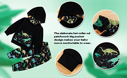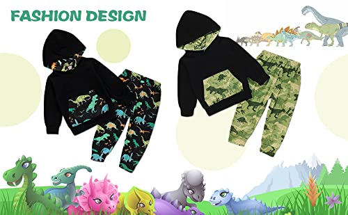 Borlai 2 Stück Kinder Baby Jungen Dinosaurier Kleidung Set Kapuzen Sweatshirt Top + Hose Outfits Set 1-7 Jahre