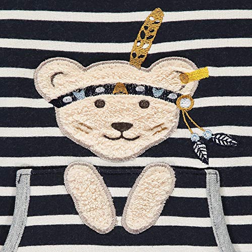 Cooler Streifenlook lockt schon die kleinsten Abenteurer an kühlen Tagen aus dem Haus. Für herrliche Wärme zum Reinkuscheln sorgt das weiche Material des Sweatshirts. Eine diagonale Druckknopfleiste ermöglicht unkompliziertes Hineinschlüpfen und Wohlfühlen. Die lockere Passform bietet aktiven Jungen Bewegungsfreiheit. Von der Fronttasche aus beobachtet ein Steiff Teddy-Häuptling das Geschehen des Tages. Navyblau und Weiß sowie Kontrastärmel verleihen jedem Look eine süße Retro-Note. Außerdem wird Ihr Kleiner von einem flauschigen Teddybärmotiv auf dem Rückenteil begleitet. Für coole Jungs!