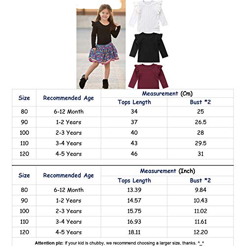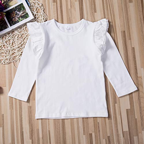 Specification: Kinder Basic T-Shirt Baby Mädchen Langarm Rüschen Schulter Tops Einfarbige Bluse Kleinkind Kleidung