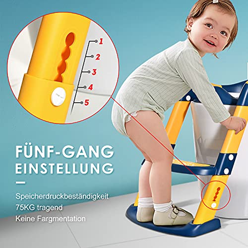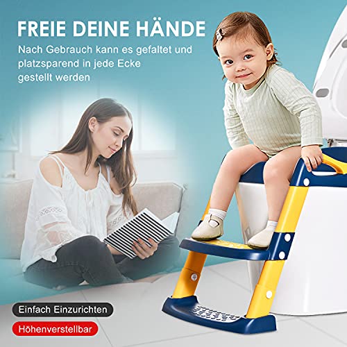 Toilettentrainer Kinder, Toilettensitz Kinder mit Treppe Tragbarer Training Töpfchensitz, Rutschfest stabil klappbar und Höhenverstellbar für 1-7 jährige Kids