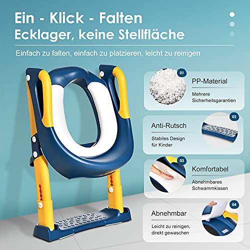 Specification: Toilettentrainer Kinder, Toilettensitz Kinder mit Treppe Tragbarer Training Töpfchensitz, Rutschfest stabil klappbar und Höhenverstellbar für 1-7 jährige Kids